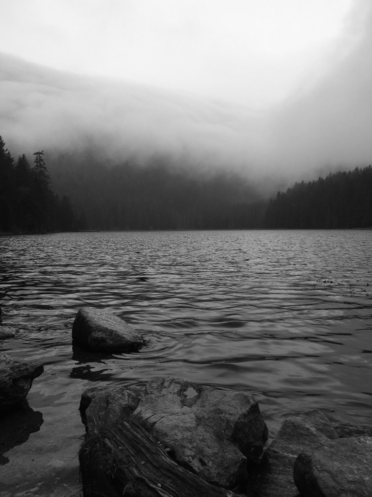 2 Unser zweiter Tag startet um 5, bis zum Frühstück vertreiben wir uns die Zeit mit jedem Regal im örtlichen Rewe. Wir lassen es ruhig angehen und machen nach dem Frühstück alle noch mal zwei-Stunden-Nickerchen. Heute besuchen wir den fast verwunschen wirkenden großen Arbersee, fahren mit der Gondel auf den Gipfel des großen Arber – sehen nichts – und spazieren durch deutschen Urwald. Wald und Wasser, das ist wohl meine Traumkombination!