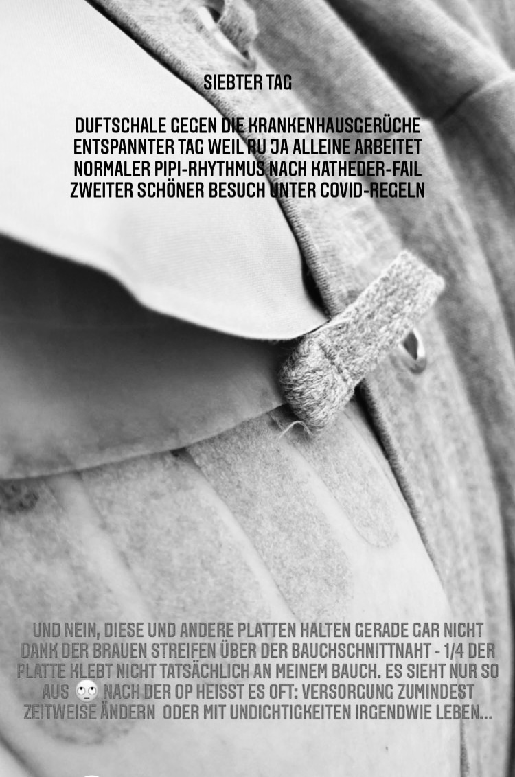Acht Tage nach der OP konnte mich mein Mann wieder abholen. So schnell aus dem Krankenhaus rauslaufen zu können, war wundervoll für mich. Warum das trotz der größeren OP so war, könnte unterschiedliche Faktoren haben. Entlassen wird, wenn die Verdauung funktioniert und das Stoma keine Blockade entwickelt. Damit habe ich bisher fast immer Probleme gehabt. Diesmal nicht. Eventuelle Gründe sind z.B., dass während der OP am offenen Bauch weniger Unruhe im Bauch entstanden sein könnte als bei anderen OPs. Oder aber, dass man früher und mit anderen Mitteln dem Darm auf die Sprünge half, sich wieder und trotz lähmender Schmerzmittel zu bewegen. Denn tatsächlich bewegen musste ich mich weniger als sonst, ich musste mich nicht übergeben und brauchte kaum externe Hilfe. Vielleicht war es auch einfach ein kleines Wunder, weil eine Mama gespürt hat, dass Zuhause ihr Baby wartet. Egal wieso, es ging schneller.