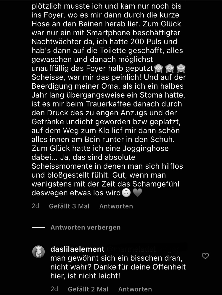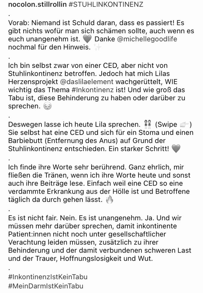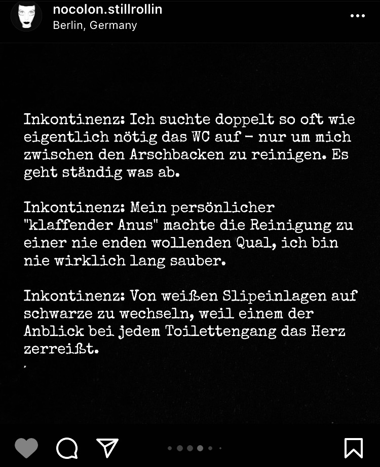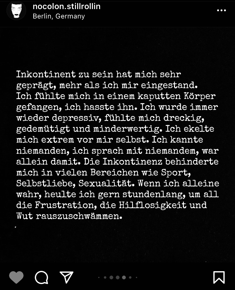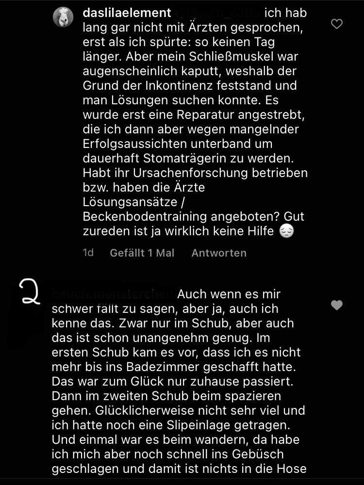 Auf Instagram habe ich mich mit Jana zusammengetan, um dem Tabu: Inkontinenz an den Kragen zu gehen. Heute möchte ich genau diesen Inhalt hier eins zu eins präsentieren. Denn ich bin immer noch sehr extrem der Meinung, dass die Community sich nicht allein auf soziale Kanäle beschränken sollte. Also nutze ich die jüngste Zusammenarbeit und verbreite sie hiermit im freien Netz, damit irgendwo irgendwer da draußen ebenso davon profitieren kann wie jemand, der es erst just auf Instagram gesehen hat. DANKE JANA