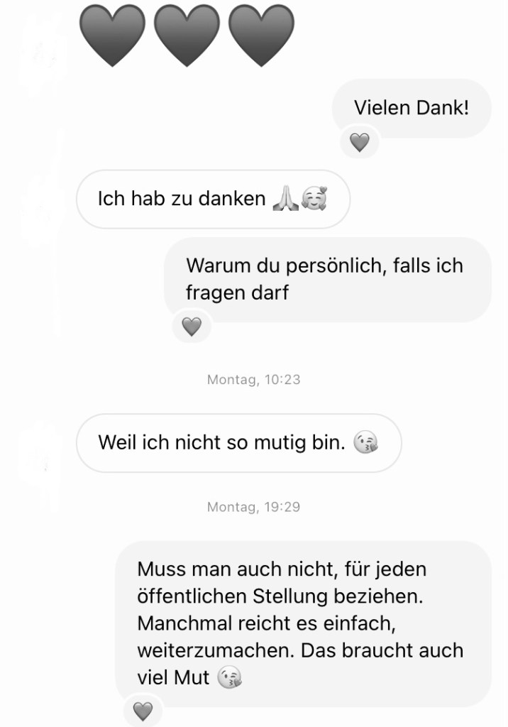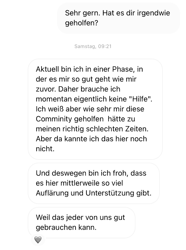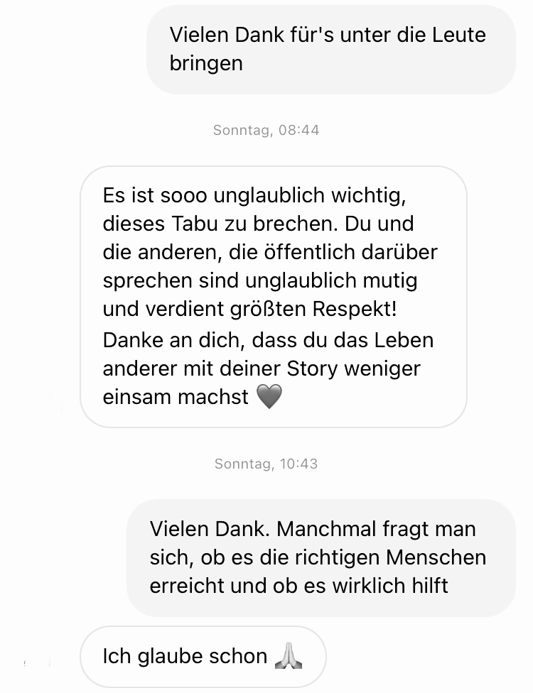 Anonym möchte ich euch hier nun Nachrichten mit euch teilen, die Jana und mich erreicht haben: