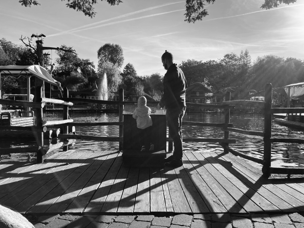 Mit frischer Energie ging es zum Nachmittag wieder in den Park. Die Skandinavischen Länder waren natürlich meine Favoriten, meine Tochter hatte große Freude die Wagen der Bluefire Achterbahn beim Start zu beobachten. Es gibt auch für die Kleinen genug – genug zu sehen, genug zu bestaunen, genug auszuprobieren, genug zu fahren. Mit Mama und Papa eben. Fontänen im See selbst betätigen, Waffeln mit uns teilen bis wir alle vollgekleckert sind, auf den Spielplatz gehen und alle möglichen Fahrgeschäfte zu dritt erkunden. Traktor und Oldtimer lenken, verschiedene Boote fahren und sogar den Euroturm zwei Mal fahren. Und dann noch Bahnfahren. Unbezahlbar. Immer mit dabei die Go-Pro für bewegte Erinnerungen und für Familie oder Freunde. Es war einfach super aufregend und eine tolle Auszeit, anstrengend aber erholsam weil eben kein Alltag. Unsere große Kleine hat sich mutig und interessiert verhalten, mit uns an der Seite war alles sicher. Sogar dann, als wir befürchteten, zu viel zu probieren … die Piraten in Batavia waren 2018 abgebrannt und 2020 neueröffnet; das wollten wir nicht ignorieren. Kurze Wartezeit und los ging’s: laut, dann wurde es komplett dunkel, es blitzte grell, dann ging die Fahrt rasant im Dunklen runter ins Wasser. Mein Mann und ich hatten dieselben Gedanken: „Oh Gott, das war zu viel.“ Aber alles ging gut!