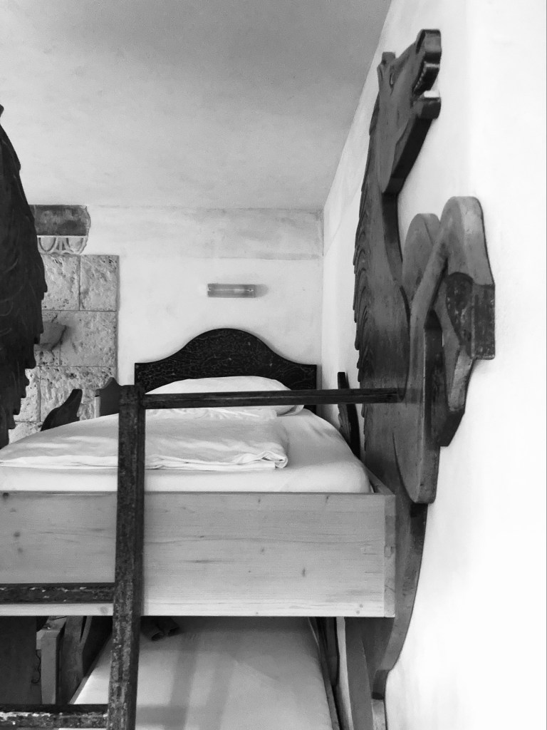 Um die Entfernung von über zwei Stunden mit unserer Kleinen so angenehm wie möglich zu gestalten und weil ich schon immer direkt im Europapark übernachten wollte, schliefen wir zwei Nächte dort. In unterschiedlichen Hotels, weil man sich ja grad um Zimmer prügelt und ich so viele Erfahrungen wie möglich machen wollte. Also ist man eben verrückt genug, in zwei Tagen zwei Zimmer zu beziehen. Nach der Arbeit am Abend hin, zur Nacht im Mittelalter. Einfach nur einchecken und ab ins Bettchen. Gegessen hatten wir daheim noch, gepackt hatte ich den Nachmittag über. Natürlich war im Koffer ein bisschen Ersatzversorgung und in meiner Handtasche. Meine Bandage war immer an der Frau. Das war alles, was für zwei Tage wegen meinem Stoma zu beachten war. Keine Medikamente für meinen Crohn. Einfach mal für zwei Tage raus und Erinnerungen schaffen. Unsere Kleine war gleich ein Fan des Burgflairs und ich hatte noch nie bei so mittelalterlichen Lichtverhältnissen gefrühstückt.