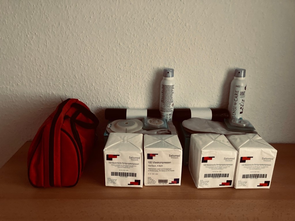 Packen in heutigen Zeiten bedeutet, auf alles vorbereitet zu sein – nämlich auf häufigere Kofferverspätungen oder gar deren Verlust. Das heißt, im Handgepäck befinden sich erste Kleidung, Wertgegenstände und Unersetzliches wie Medikamente und absolutes Minimum, um mein Stoma den ganzen Urlaub zu versorgen. Typisch ich, hab ich, um an Alles zu denken, eine Tabelle angelegt, in der alle Packstücke mit Inhalt aufgelistet sind. Kofferverlust eingeplant, jeder Koffer hat was von jedem drin. Es befanden sich in beiden Koffern je Versorgungsmaterial für die doppelte Dauer samt Müllbeutel, Pflasterspray und Kompressen. Meine rote Handgepäck-Versorgung enthielt geschnittene Versorgung für eine Woche mit kleinen Spray zum Fliegen. Mein Horror ist es, wenn mir im Urlaub die Versorgung ausgehen würde. Ich habe schon immer zu viel eingepackt und glaubt mir, ich war dieses Mal total unsicher und aus der Übung. Nichts ging verloren + mein Darm hat nicht verrückt gespielt = 70% zu viel gepackt! Beim nächsten Mal wird die Stoma-Versorgung nur im Handgepäck sein, mehr als dieses Mal – aber hier kann ich ja sicher sein, dass es mit mir ankommt, und es erleichtert die Koffer. Ich weiß, viele von euch machen das schon so. Ich lerne noch.