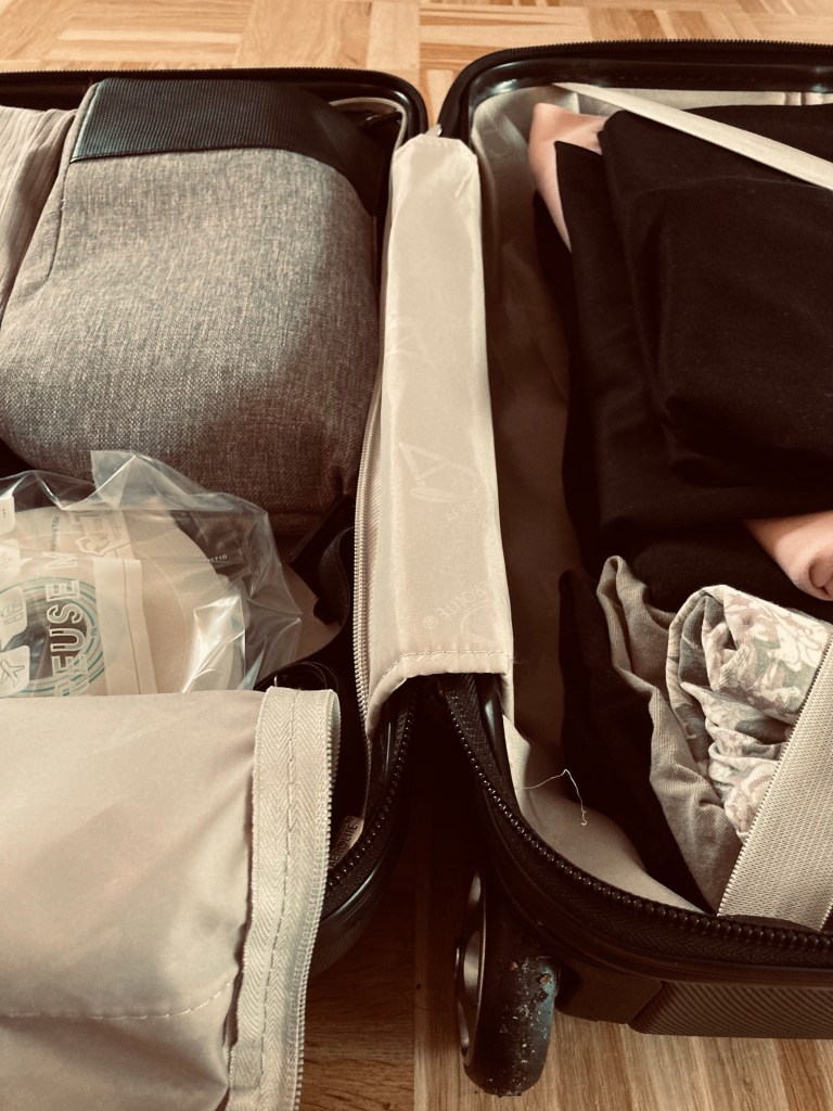 Wir gehen Mittagessen und für einen letzten Kaffee ins etwa 200 Jahre alte und somit ältestes Café der Stadt. Unser letzter Uber fährt uns zum Flughafen, im Hotel hatte ich mich gerade umgezogen, weil mir heute schlichtweg zu warm ist. Der kleine Flughafen hat keine neuen Körperscanner, sondern die alten. Ich freu mich direkt, für mich selbstverständlich: ich laufe durch, Nichts piept. Denn der Beutel ist Plastik und kann nicht piepen. Einen weiteren Spaß erlaube ich mir noch, weil mich die Regelung auch etwas nervt: 1 Liter. Nicht 1 Liter Flüssigkeit im Handgepäck, sondern Flüssigkeiten je bis max. 100 ml in einem 1 Liter Tütchen. Ich werde natürlich rausgezogen für mein Gepäck, dann spielen der Sicherheitsbeamte und ich Tetris, damit ich meine zwei Gläser Honig mit allem Kram in das 1 Liter Tütchen passen und mit allem nach Hause fliegen kann. Der Flug vergeht rasch, der Frankfurter Flughafen hat Stau im Abholterminal der Lufthansa und trotzdem passt alles super, denn in zehn Sekunden sind die Koffer und wir auch ohne Parkplatz im Auto verstaut. Nach Hause gehen fühlt sich immer schneller an und somit flitze ich mit 160 in meinem Polo über die Autobahn, höre Musik und kann es nicht erwarten, nach Hause zukommen. Ich bin schon immer gern weggefahren, weil es mich raus zieht. Und zugleich bin ich immer sehr gern wieder heim gekommen und noch niemals so sehr, wie dieses Mal. Ich wollte zu meiner Familie, zu meinem Kind. Meine Sehnsucht nach ihr war enorm und über das Wochenende hinweg haben mich so viele Dinge an sie erinnert. Obwohl wir uns Sprachnachrichten zum Morgen und Abend geschickt haben, war es nicht genug und im Auto kullern Tränen, weil ich sie so so gern in meinem Leben haben möchte. Mein Herz wird leichter als ich den Polo ausstelle und ins Haus laufe. Ich löse Papa ab und lege mich stattdessen neben mein kleines schlafendes Wunder, starre es voller Glück an. Ich bin angekommen, geerdet.