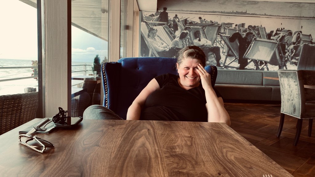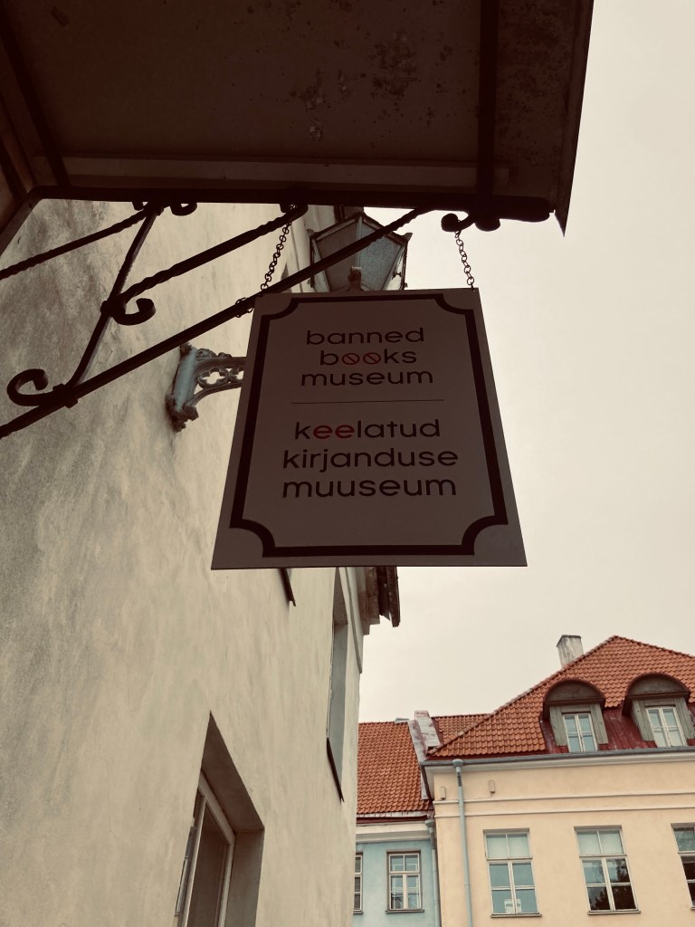 Danach steht Strand auf dem Plan, nicht zum Baden bei dem Wind und den Temperaturen, sondern einfach für das Gefühl. Der nächste Uber fährt uns zurück durch den riesigen Wald, der auch ein riesiger Friedwald ist. Es ist sehr windig, wir setzen uns in ein Café mit Ausblick und weichen Stühlen, ich trinke einen Kaffee mit Schlagsahne und Vana Tallinn, altes Tallinn. Der Likör schmeckt mir wirklich gut so und in Schokolade habe ich ihn ebenfalls getestet. Pur nicht so. Während wir dort sitzen, werden wir Zeugen einer Gender-Reveal-Zeremonie am Strand und ich verliere mich ein wenig in Gedanken, wie es sich angefühlt hat, so kurz davor und wie es sich nun als Familie anfühlt. Später genieße ich den Sand unter den Füßen beim kleinen Spaziergang am Meer. Danach geht’s mit dem letzten Uber des Tages in die Altstadt zum Schlendern. Wir laufen über heftigstes Kopfsteinpflaster, womit man sich locker das Bein brechen kann und vorbei an alten und schönen Gebäuden, gesäumt von Cafés und Läden aller Art. Wie uns erklärt wurde, waren die Esten früher Heiden. Durch unterschiedlichste Einflüsse ist nun für viele verschiedene Glaubensrichtungen ein Haus Gottes zu finden, irgendwo. Nur Muslime scheint es hier nicht so zu geben, was ich durchaus interessant fand. Denn warum nicht? Unser letzte richtige Stop heute ist das banned books museum. Auf kleinstem Raum sind hier Bücher aus aller Welt ausgestellt, der Betreiber ist mit Herzblut bei der Sache. Für jedes der Ausstellungsstücke gibt es eine Erklärung, wo und warum es verboten wurde. Auch Kinderbücher sind dabei, weil sie über das, was sie tatsächlich darstellen sollten, hinaus missbraucht wurden. Manche Bücher machen schnell Sinn, bei anderen liegt der Knackpunkt im Detail versteckt und hat auch ordentlich Zündstoff für Diskussionen. Nichts zu verstecken haben hier die Autobiografien von Hitler, die zensierte Version liegt aus. Unter’m Tresen hervor kommt im Gespräch dann eine Erstausgabe desselbigen Buches. Ein Geschenk eines deutschen Besuchers, der es beim Entrümpeln fand und es nicht bei sich behalten wollte. Dieser kleine Ort, der mich richtig überrascht und zum Nachdenken angeregt hat, ist ein guter Ort dafür. Zum Abendessen gibt es in einem kleinen Lokal Ramen und Späße mit dem Betreiber. Allein schon der Fakt, dass es während wir saßen, bei mehreren Lampen zu einem Kurzschluss wegen Wasser in der Wand kam, war ein Lacher wert. Noch mehr jedoch stellt dieser Este für viele unter Beweis, dass sie auf den ersten Blick etwas grimmig und distanziert wirken – eigentlich aber offene und lustige Menschen sind. Mach dem Abendessen bin ich schon ziemlich erschlagen, wir laufen in die Richtung des Hotels und entscheiden uns noch für ein lokales Bier im Tap room. Meines heißt Unicorn tears und hat tatsächlich Rosenwasser mit drin. Währenddessen lädt mein Handy in der dortigem Steckdose, den ganzen Tag Bilder machen, Reservierung tätigen und Wege finden zerrt am Akku. Als Abschluss des Tages gönnen wir uns noch Crepes, Estland Style. Sehr lecker und mächtig, meiner mit Banane, Nüssen und Honig. Danach geht’s zum Container und zum Fernsehprogramm, welches uns durchaus amüsiert. Ein weiterer Tag schon wieder rum, aber so viel wahrgenommen und gefühlt.