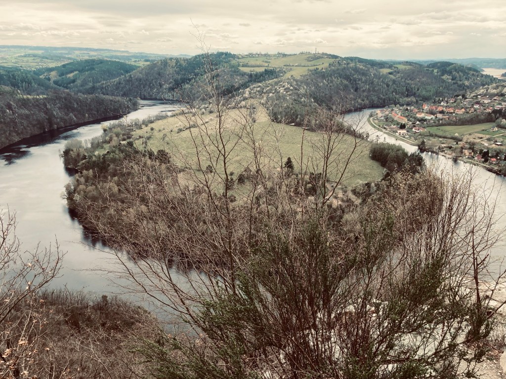 Zweiter ganzer Tag. „Mama ich habe ECHT geschlafen“ – sie sitzt happy und ausgeschlafen neben mir. Wieder langsames Frühstück und die Picknickproduktion. Heute sind wir nicht gut organisiert, ich bin die Letzte im Schlafanzug und fühle mich morgens schon lost. Wir wollen die Moldau-Schleife mitten in Tschechien sehen. Also raus aus der Stadt. Der Weg dorthin ist mir klar, die Verkehrslage um Prag meistens eine Katastrophe. Ich verfahre mich trotz Planung und fahre auf die Autobahn mit dem Stau. Ich meine STAU, denn der Tscheche vor uns steigt aus und raucht. Niemand bewegt sich. Dann fährt man wieder richtig, alles lockert sich auf. Es folgt wieder Stillstand. Ich muss nicht sagen, dass ich richtig sauer war auf mich, dass es passiert war. Aber nur kurz. Wir wechseln das Navi, dann stimmt das Navi nicht mehr mit der Straße überein und wir verfahren uns wieder. Wir brauchen zwei Stunden statt einer Stunde, inklusive eines Heulanfall meinerseits am Steuer und 2 Stunden Tablett für’s Kind. Den Award für die besten Eltern erhalten wir heute nicht, wir wollen lösungsorientiert arbeiten. Wir kommen an, die andere Familie hatte nach einer Stunde Fahrt die schwierige Wanderung zum Aussichtspunkt bereits gestartet. Wir starten die Kleinkind-Route. Aber Kind und Mutter sind nicht gut zu Fuß, bisschen lauffaul (Kind) und ohne Kondition (Ich). Ich sehe fertig aus und fühle mich so. Es nervt und ärgert mich selbst. Nicht mein Tag und das ist auch okay. Bei der Aussicht auf einem großen Felsen wird gepicknickt. Die Aussicht war schön. Es war mehr geplant an diesem Tag, gemeinsam geplant. Es gibt noch einen Staudamm, einen Turm und eine Ruine in der Gegend, aber wir treten den Heimweg an, um einen gemütlichen Abend haben zu können. Wir fahren zurück, diesmal eine Stunde und barfuß – meine tollen Schuhe scheuern. Wir sehen Einiges von diesem Land. Ärmliche Dörfer, eine Beerdigung, Osterdekor an der Hauptstraße, eine kanadische Schule, Autos die bei uns nicht mehr fahren dürften, hügelige Landschaft und Schlaglöcher-Straßen. So hatte ich mir das ländliche Tschechien vorgestellt. Zurück im Haus fange ich das Kochen an, die andere Familie kauft noch mal was ein. Ich mache Kartoffelpüree ohne richtiges Werkzeug, denn das fehlt hier – ich stampfe mit einer Tasse und es wird cremig mit dem Rühreinsatz eines Handrührgerät ohne das Handrührgerät. Bin stolz. Danach sind die Kids im Garten, ich dusche und das Wasser tut gut, wie es auf meinen Kopf prasselt. Dann ist Bettgehzeit, mir fehlt meine Creme aus dem Kühlschrank gegen die Neurodermitis. Die ist grad viel zu oft aktiv. Muss eine andere Kortisoncreme nehmen, die ich mit habe. Geht nicht anders. Um 19 Uhr bin ich durch und wir gehen wie üblich zu Zweit ins Bett. Um 21 Uhr Aufruhr im Haus, ich merke es im letzten Eck des Hauses. Ein Gefühl in der Magengrube. Unser Tschechische Schutzengel ist da. Beim Nachbar brennt es, die Flammen sind schnell sehr groß. Was genau ist, können wir nicht erkennen. Ich gehe mich absprechen mit den anderen, die Männer haben die Lage außen im Blick und ich zieh mich wieder richtig an. Die Kleine schläft und ich bin sehr aufgeregt. Die Funken fliegen auf unser Dach, auf das Haus am Ende einer Sackgasse. Wenn das ganze andere Haus Feuer fängt, müssen wir zu Fuß raus und alles hier lassen. Das stresst mich. Der Spuk findet zum Glück ein schnelles Ende, es war nur des Nachbars trockene Hecke, nicht das Haus. Die Feuerwerk rückt ohne Sirene an und die Kleine hat die ganze Aufregung verschlafen.