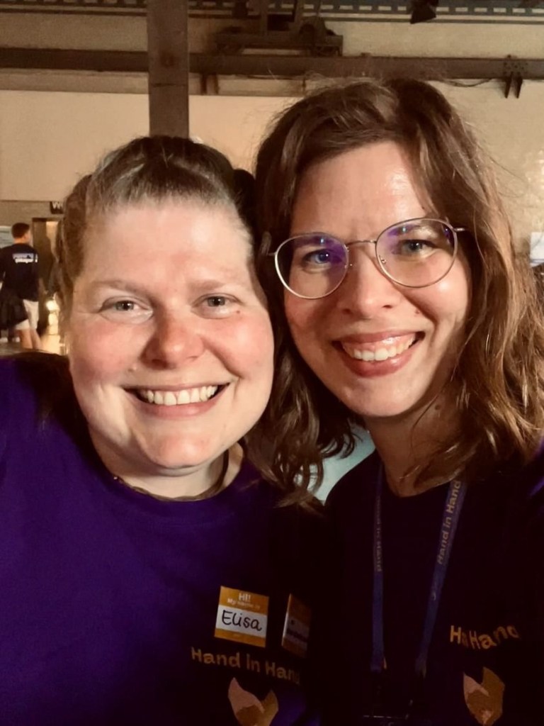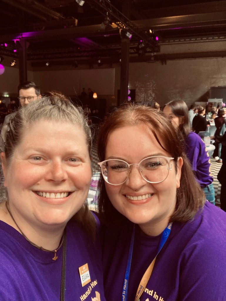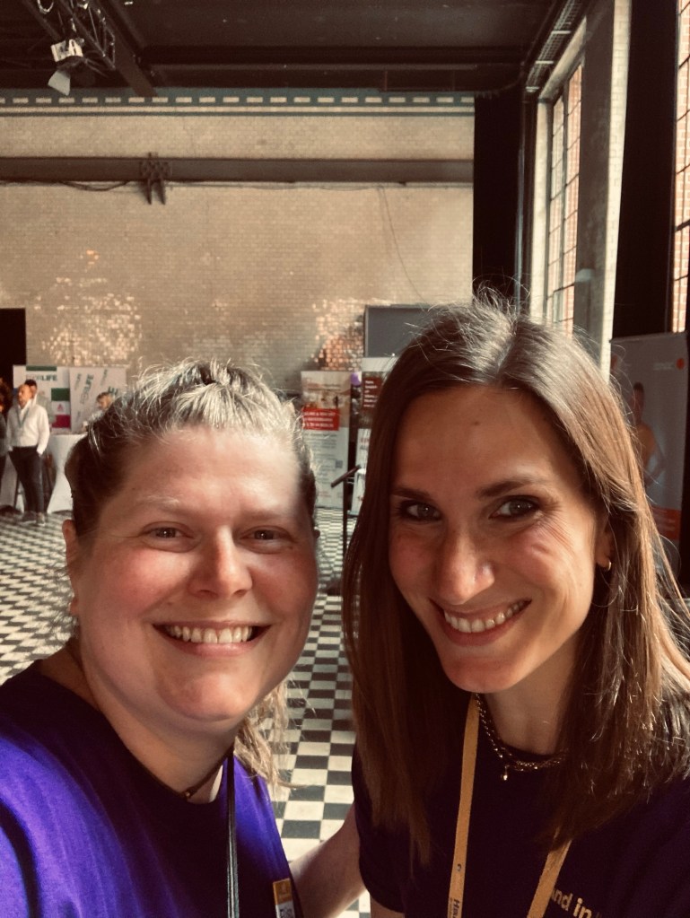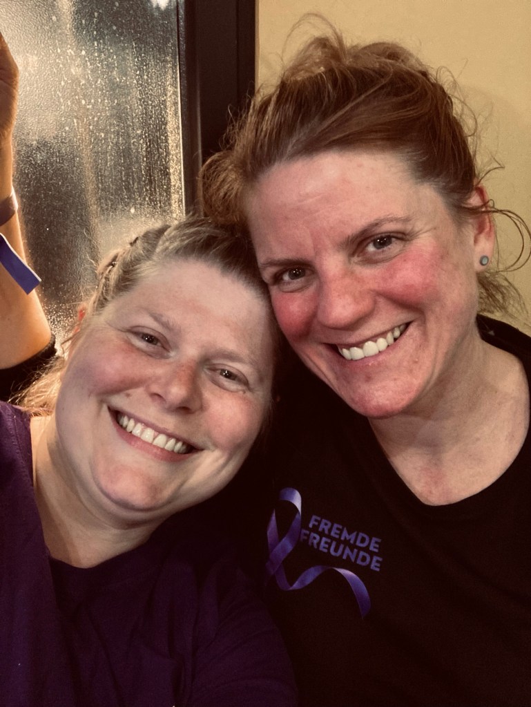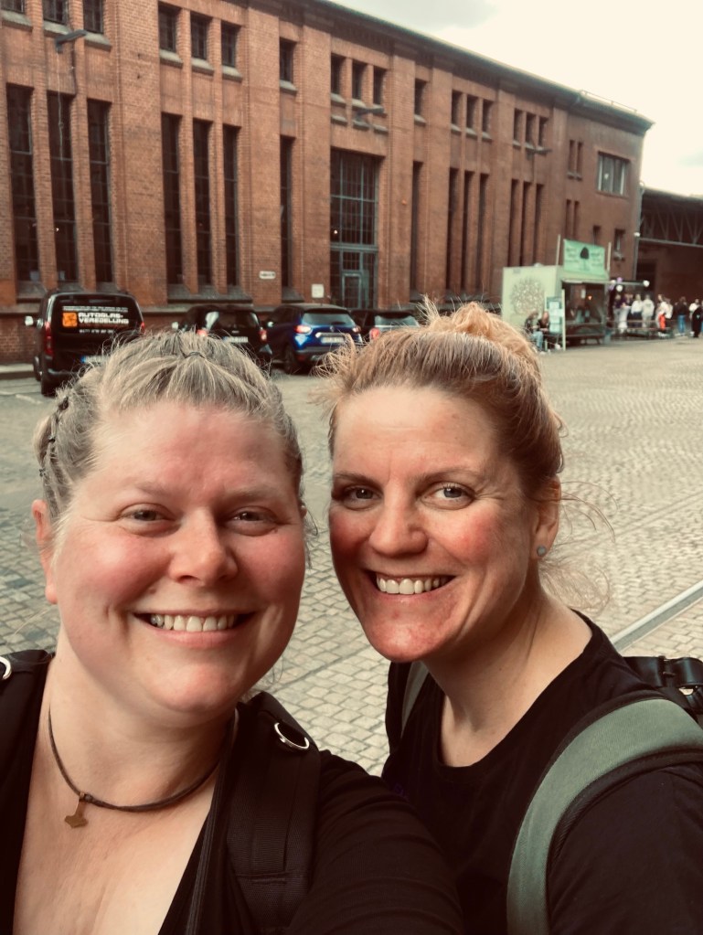 Der Spaziergang bis zur Malzfabrik a.k.a die Location, den ich so im Kopf hatte, ist viel zu warm in praller Sonne und anstrengend. Ich bereue mehr als einmal, nicht den Uber vom Hotel aus mit Katharina genommen zu haben, aber bin auch zu stur und stolz, das wirklich zuzugeben und uns noch den Uber zu holen. Nach einer halbe Stunde mit hochroter Birne, kommen wir an. Viele Menschen sind da, so unterschiedliche Menschen, die etwas verbindet. Ich bin so froh, hier zu sein. Dass ich nach vielen Jahren des Schreibens und des Networking Menschen zum Anfassen habe. Oft bin ich zu weit weg von den Treffen oder ich kann das spontane Kommen nicht einrichten. Dass ich Menschen treffen und drücken darf, deren Arbeit ich seit Jahren mega finde oder mit denen ich gemeinsame gewachsen bin, ist toll. Ich drücke mich über den Tag durch die Leute, die ich unbedingt sehen will und mache natürlich Erinnerungsfotos, die ihr unten sehen könnt. Es ist insgesamt eine Erfahrung mit so vielen Eindrücken, die ich in dem Moment gar nicht verarbeiten kann. Erst mal treffe ich all diese Menschen und ich weiß teils nicht mal, wie ich sie ansprechen soll. Weil ich in mir immer denke „mich kennt doch niemand“ und dann denk ich mir, warum ich die Leute ansprechen soll, was ich ihnen geben kann, wenn sie mich treffen und der Gedanke ist irgendwie Quatsch. Die, die ich anspreche, wissen sehr genau, wer ich bin und was ich seit Jahren mache. Und dieses gegenseitige Verständnis, die Anerkennung für die Aufklärungsarbeit (so unterschiedliche diese auch ausgelebt wird) und die Freude, sich endlich im echten Leben gegenüber zu stehen, ist wirklich unbeschreiblich. Zwei mal habe ich mich an dem Tag etwas zurückgezogen, einmal draußen (auf der Rampe der Fabrik sitzend und dem Regen zuschauend) und einmal im Zuschauerraum (als grad kein Auftritt am Laufen war). Im zweiten Moment darf ich einen Fangirl-Moment erleben und das macht mich tatsächlich sprachlos. Ich werde angesprochen, danke noch mal dafür, dass du mir diesen absolut süßen Moment geschaffen hast! So liebe und unerwartete Worte waren so schön und ich weiß, ich habe von Ohr zu Ohr gelächelt. Ich springe zwischen dem Froschteich im Hinterhof, Diskussionsrunden und persönlichen Gesprächen hinterher. Ich werde ein paar Mal tatsächlich angesprochen in Bezug auf die Verbindung von Crohn und Endometriose. So eine unglaublich bunte Mischung von Menschen sieht man hier und es ist wunderschön zu beobachten, was aus der Community die letzten Jahre geworden ist. Auch, wie man sich in Diskussionen beteiligt und mit Informationen herausrückt, die man in Alltag nie im Leben freiwillig in einer Gruppenunterhaltung raushauen würde, aber mit diesem Haufen von Menschen passiert das ganz einfach und wir profitieren alle davon, dass es einfach passiert und wir ohne Erklärung, ohne Entschuldigung oder schlechtes Gewissen frei reden können. Mehrfach darf ich an diesem Tag hören, dass ich eine der ersten war 2017/18, die über Instagram auffiel, was das Leben mit Stoma betraf und wie viel Mut ich damit anderen gegeben habe und ganz ehrlich: WIE GEIL IST DAS!!! Mein Herz überschlägt sich.
